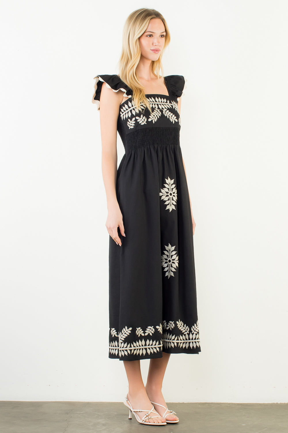 Allende Embroidered Midi Dress