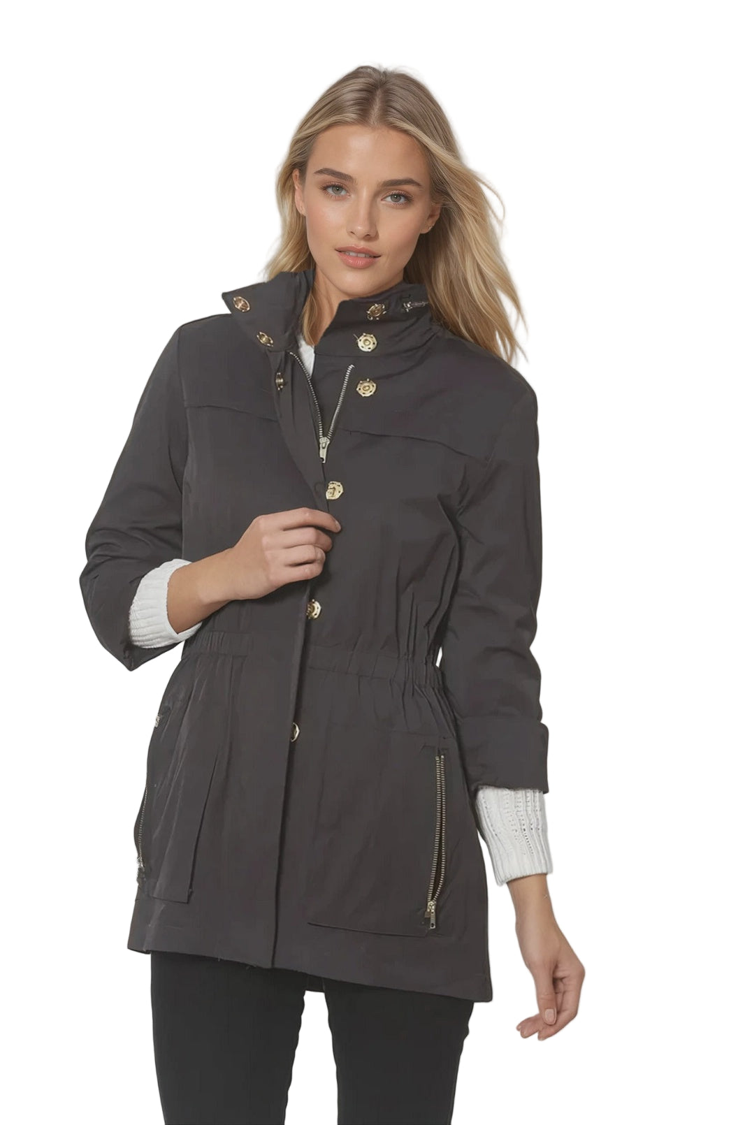 Engineered to keep you dry during rainy seasons and designed to look fashionable year around. Breathable fabric for utmost comfort. Adjustable waist to define a feminine figure. Luxurious satin finish. Water-resistant refers to the ability of a material or product to resist the penetration of water to a certain degree, but not necessarily prevent it completely. While water-resistant items can handle some exposure to water (like light rain or splashes), they aren't built to withstand full immersion or prolonged exposure.