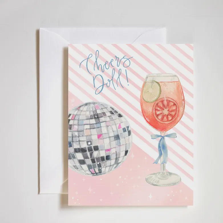 Cheers Doll Aperol Spritz Disco Ball Celebration Card