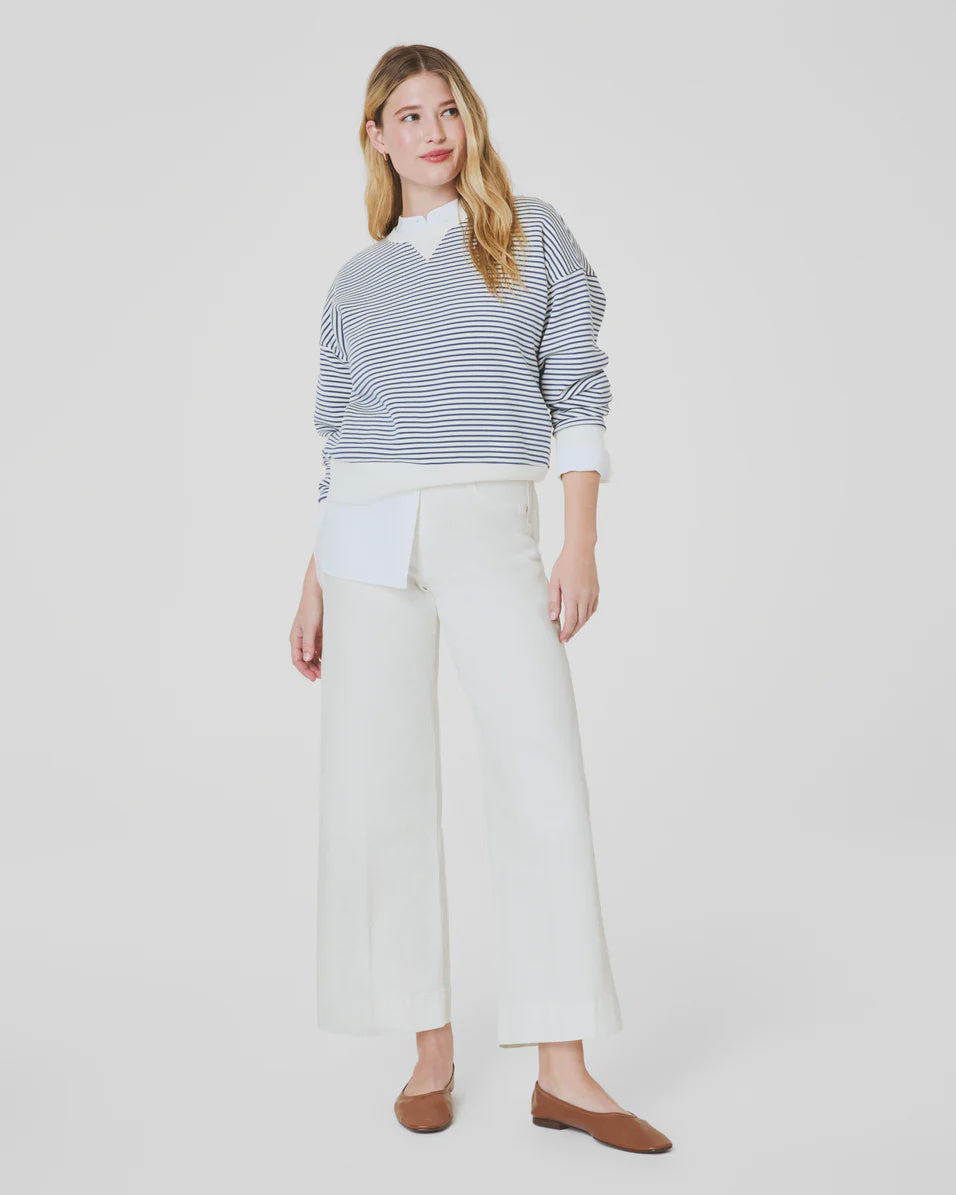Crafted from premium, 4-way stretch denim designed to hug your curves, these jeans are engineered with built-in targeted SPANX TummyTamer Tech™ that shapes your waist. Plus, with a cropped wide leg silhouette and high waist design, they elongate the leg and celebrate your figure. All you have to do is pull them on: no zippers, a faux button front, and faux front pockets (so no bulk!). This is denim done right.