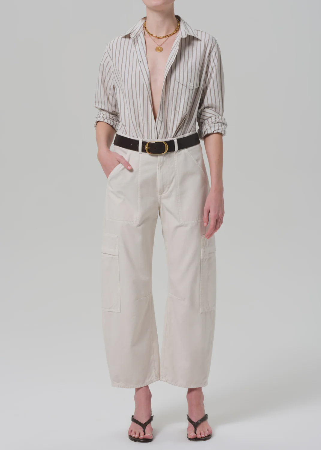 Easy and effortless. Our Marcelle features cargo-inspired detailing and relaxed straight leg that tapers at the ankle. Crafted a breathable but rigid, non-stretch twill for all day wear - style yours back to heels or sneakers.