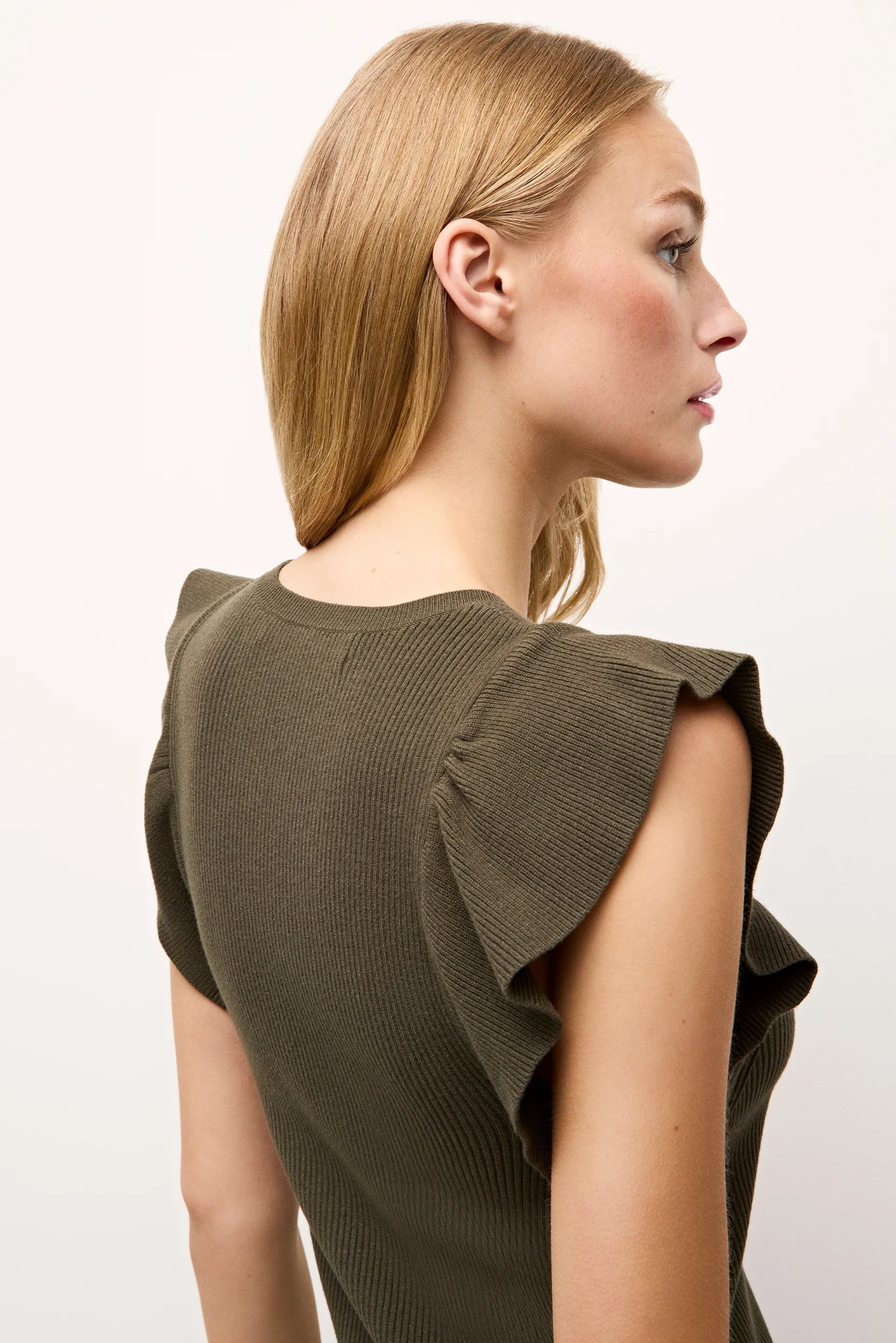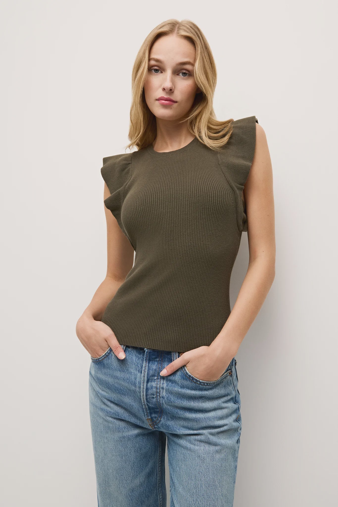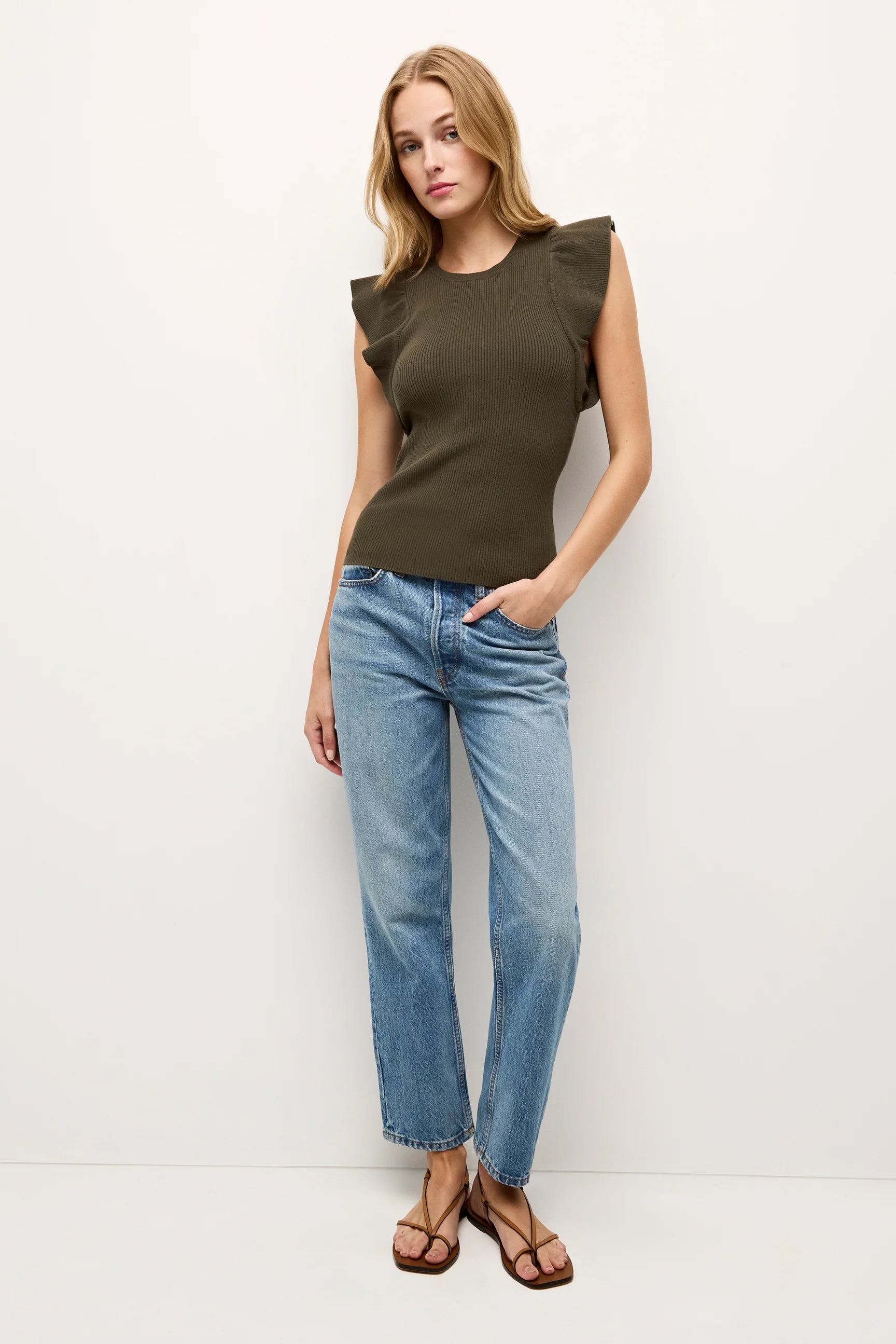From neutrals to brights like this bold Tangerine hue, Rory never disappoints. With a ribbed bodice and feminine ruffle sleeves, the fitted, figure-flattering top was designed to be tucked in and pairs particularly well with any of our high or mid-rise shorts, especially our new owens skirt in our embroidered Primavera print.